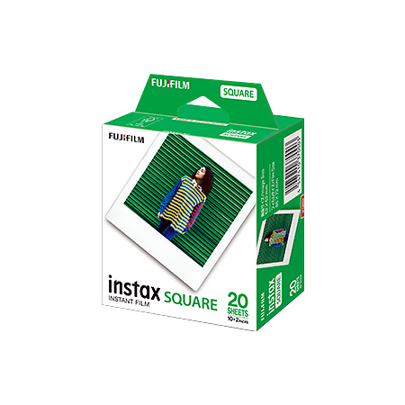 instax SQUAREに対応したフィルム。画面サイズが62mm×62mmの「1対1」なので人物・風景を問わずさまざまなシーンの撮影に適しています。