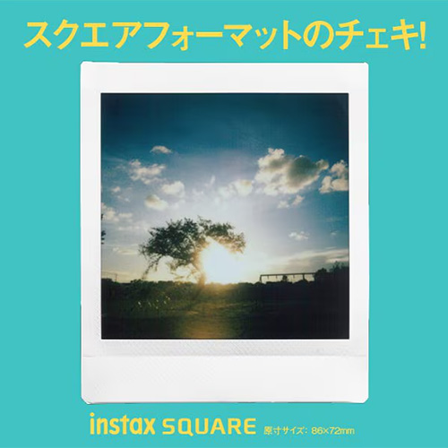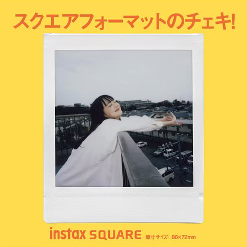 スクエアフォーマットは、instax miniプリントに比べて撮影範囲が広いため、グループショットや風景写真の撮影にも適しています。被写体そのものだけでなく背景やその場の雰囲気まで写し出すことができ、撮影表現の幅が広がります。フィルムサイズ:86×72mm