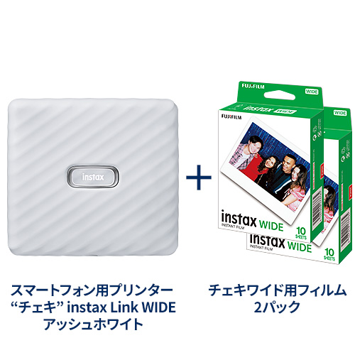 【期間限定セット品】スマートフォン用プリンター “チェキ” instax Link WIDE アッシュホワイト+チェキワイド用フィルム2パック